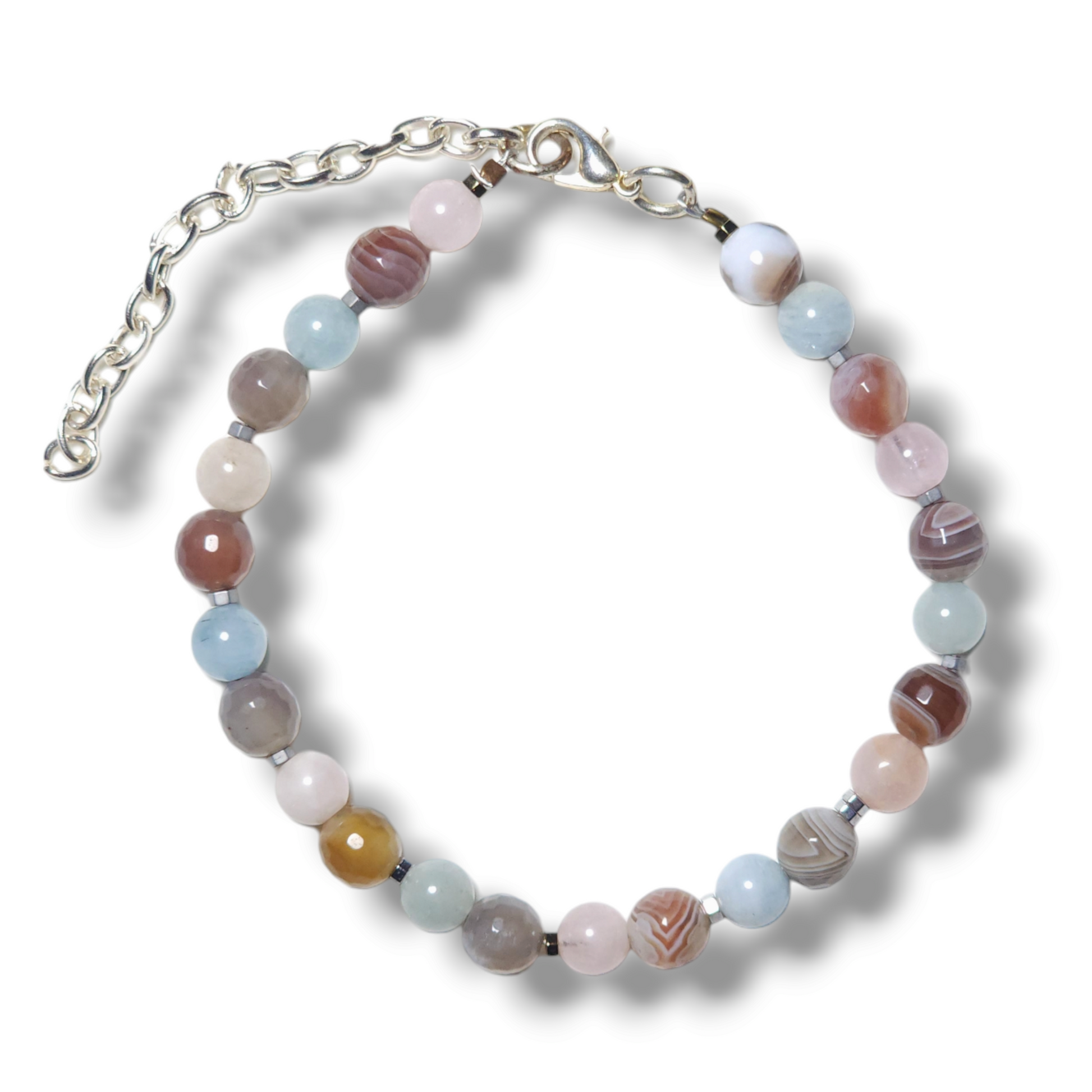 Featuring Agate for stability and Morganite for love and joy, this bracelet reflects the vibrant essence of a desert landscape in celebration.