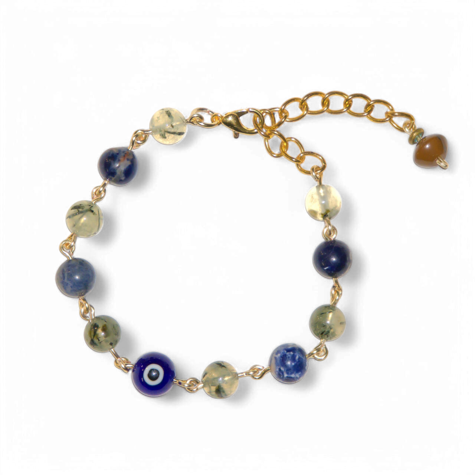 A handcrafted bracelet made in Tucson, Arizona, designed to enhance clarity, insight, and protection against the evil eye. Each element is chosen to strengthen intuition, promote wisdom, and shield the wearer from negativity.